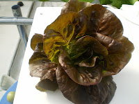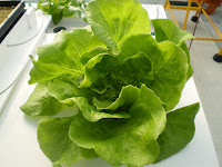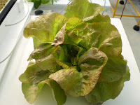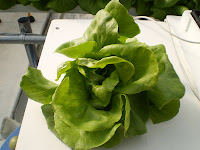 After transplanting, lettuce was produced to harvest in CropKing NFT channels. These 4” wide growing channels are food-grade, UV resistant PVC with matching top caps punched to fit rockwool or other similar growing mediums. Spacing for plant production is 8” within and across channels. All channels are fed by nutrient feed lines supplied a continually recirculating nutrient solution. Each channel drains into a completely closed drain line which returns the nutrient solution to the reservoir. Galvanized steel frames support the channels and the drain line. Solution is also continually cycled through the CropKing Fertroller where automatic pH and EC adjustment is carried out to meet programmed solution setpoints. The pH was maintained at 5.8 by the addition of dilute sulfuric acid. EC was maintained at 1.8 by the addition of concentrated fertilizer solution and source water.