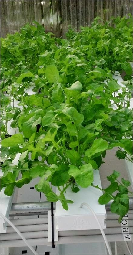 needed based on daily measurements of EC. These trials were carried out in a system designed to pull from four different 40 gallon nutrient tanks so that differing solution could be tested in a randomized block design. At harvest, shoot fresh weight was recorded individually for each head.